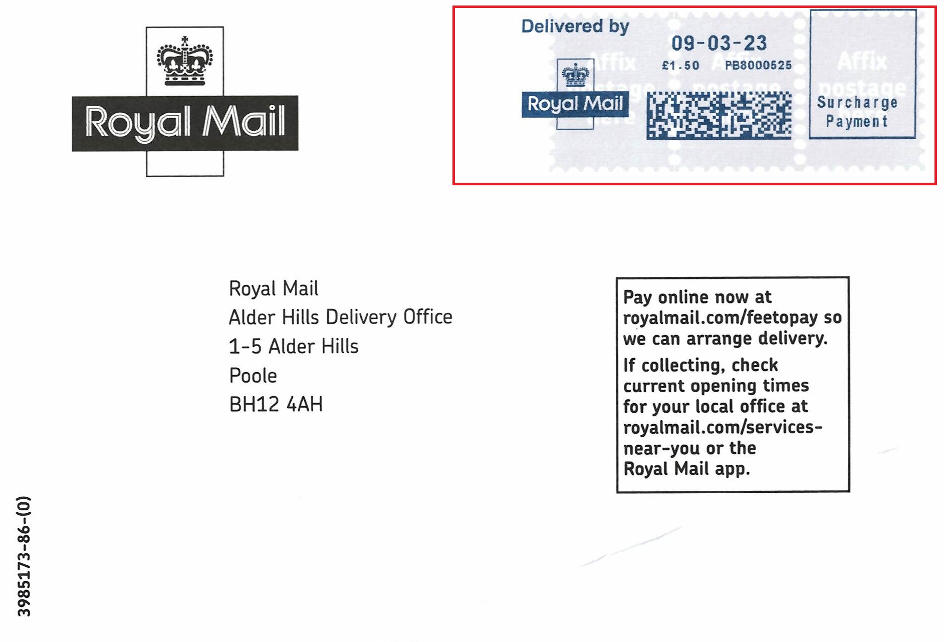 If you've received a Royal Mail Fee to pay card, you can pay this directly using the Franking Machine.